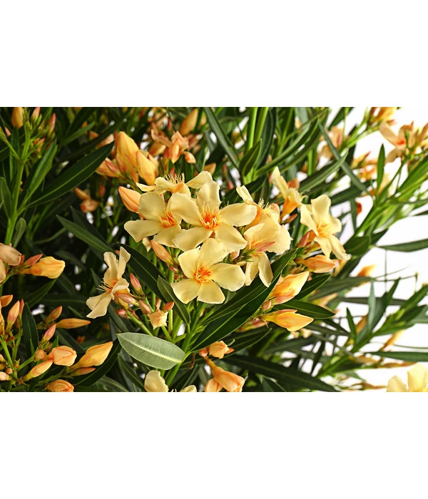 Standardpflanzen für die Terrasse, den Balkon oder den Eingangsbereich sind Ihnen zu langweilig und nicht spektakulär genug? Dann wird es höchste Zeit für einen Oleander. Der überaus attraktive Busch kommt schon in einer beachtlichen Wuchshöhe zu Ihnen und wird daher von vorne herein für neidische und bewundernde Blicke sorgen. Neben dem üppigen, dichten Wuchs überzeugen aber natürlich hauptsächlich die Blüten Ihrer neuen Kübelpflanze. Denn der Oleander blüht ausdauernd zwischen Mai und Oktober und verschönert damit die gesamte Gartensaison. Und da diese Kübelpflanze mit Ihren Reizen nicht geizt, ist ein Oleander gleich mit Dutzenden schöner Blüten übersät. Wenn Sie dieses Blütenmeer verlängern möchten, sollten Sie Ihre Pflanze öfter während des Jahres zurückschneiden. Als Belohnung verbreitet der Oleander-Busch dann mediterranes Urlaubsfeeling und verwandelt Ihren Außenbereich in eine wahre Ruheoase.