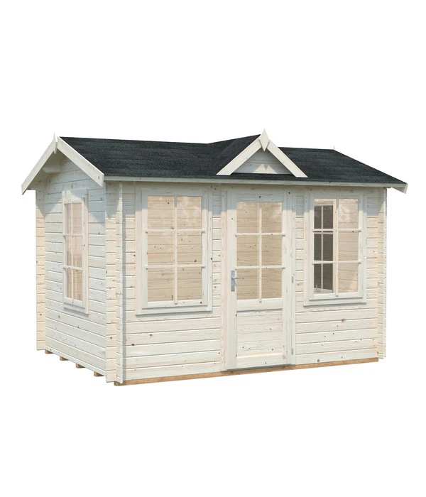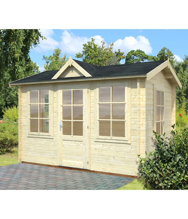 Das hübsche Gartenhaus bietet Ihnen eine besonders robuste Qualität und punktet nicht nur mit isolierten Fenstern, sondern auch mit winddichten Chalet-Eckverbindungen. So können Sie es problemlos in den kalten Monaten kostengünstig beheizen, um von einer Ganzjahresnutzung zu profitieren. Dank der Tauchgrundierung ist das Holz vor Wettereinflüssen geschützt und kann nach persönlicher Vorliebe gestrichen werden. Egal, ob Sie Besuch empfangen, es als Ihr persönliches Plätzchen im Grünen herrichten oder als Hobbyraum umgestalten, diese Hütte kann mehr als nur Gartenequipment beherbergen. Sichern Sie sich Ihr neues Gartenhaus und fügen Sie Ihrer Bestellung doch gleich noch die passende Dacheindeckung hinzu, damit der Einweihungsfete nichts mehr im Weg steht.