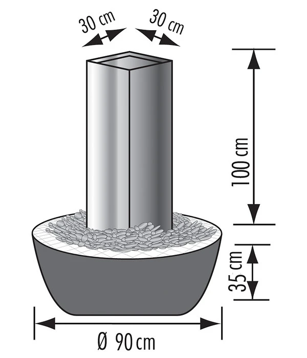 Im Lieferumfang zum Seliger Edelstahl-Gartenbrunnen Tower ist nicht nur die Edelstahlsäule enthalten, sondern auch gleich eine passende Pumpe mit Zuleitungskabel, die robuste PE-Wanne, die im Boden versenkt wird, die Abdeckplatte und die integrierte LED-Beleuchtung. Haben Sie also das Brunnenpaket zu Hause, können Sie sofort mit dem Aufbau beginnen, der Ihnen leicht und schnell von der Hand gehen wird. Das Einzige, was Sie noch besorgen müssen, ist der Zierkies, mit dem die Wanne und die Anschlüsse im Boden verdeckt werden.