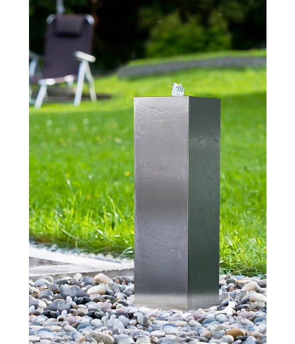 Der Seliger Edelstahl-Gartenbrunnen Tower wird aber nicht nur bei Tag die Blicke auf sich lenken, wenn die Sonne das an den Seiten herabrinnende Wasser zum Funkeln bringt; auch wenn sich die Dunkelheit über Ihren Garten senkt, wird das Wasserspiel nichts von seiner Attraktivität einbüßen. Denn die LED-Beleuchtung, die am Wasseraustritt der Säule integriert wurde, verleiht dem Wasserspiel ein geheimnisvolles Flair. Wir sind sicher, dass Sie es sehr genießen werden, an schönen Sommerabenden auf der Terrasse zu sitzen, entspannt zu plaudern und dabei den Seliger Edelstahl-Gartenbrunnen Tower zu betrachten.